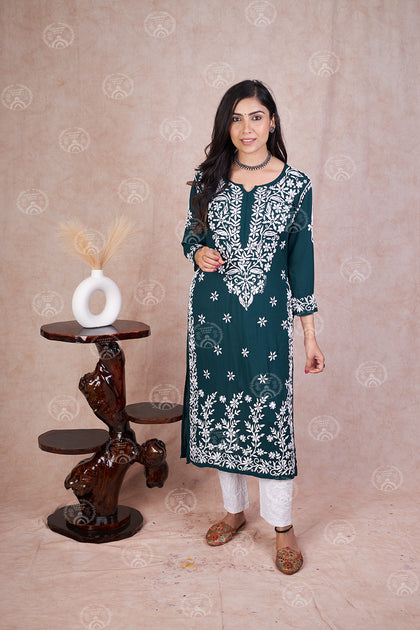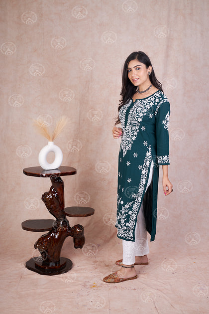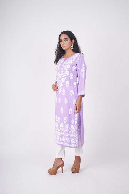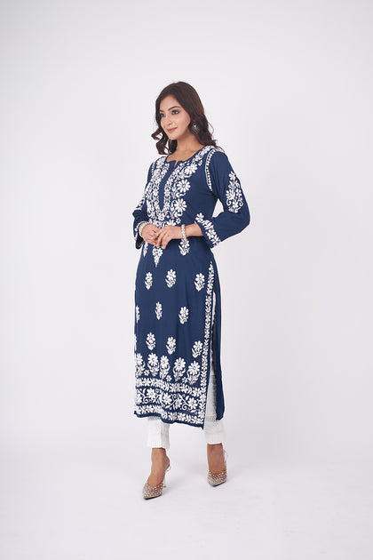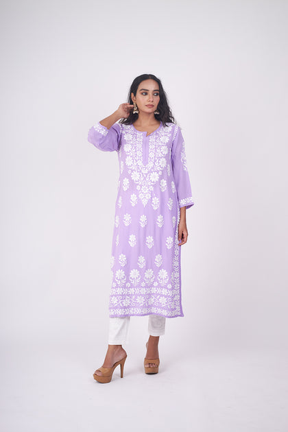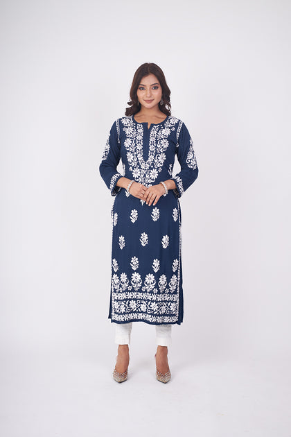 Shop the Best Lucknow Long Chikan Kurti from the Lucknowi Chikan Store.