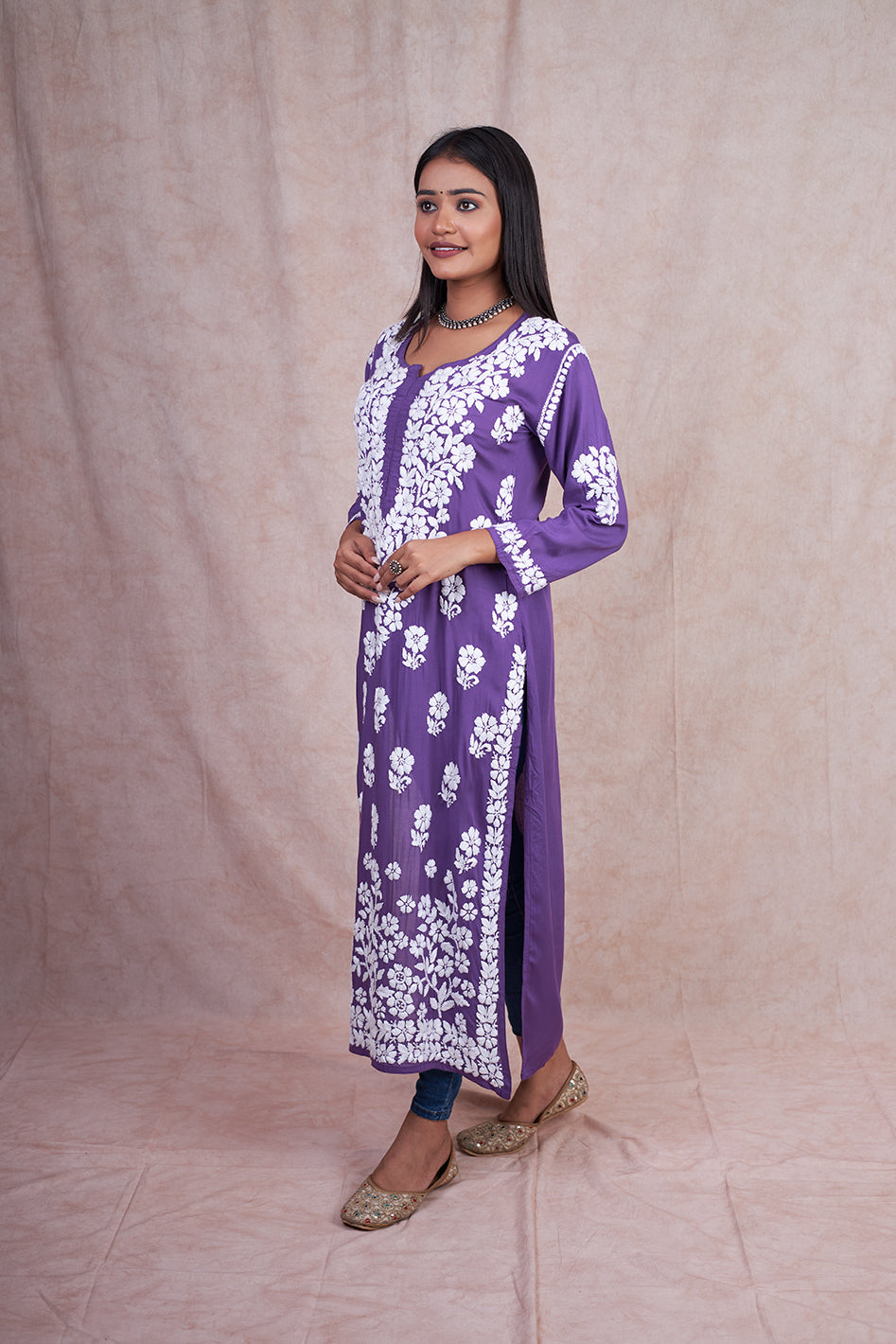 - Indulge in luxurious comfort with this exquisite Limited Edition Modal Yasmin Kurta Crafted from a delicate modal fabric designed to flow gracefully over your body, the kurta is further enhanced by subtle Lucknowi Chikankari. A timeless addition to your wardrobe, this piece is sure to become your go-to for sophisticated style.
